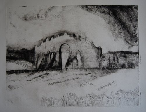 Eyecatcher, view towards Rousham, Drypoint.