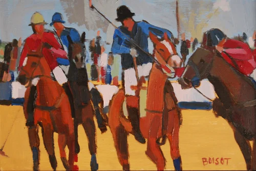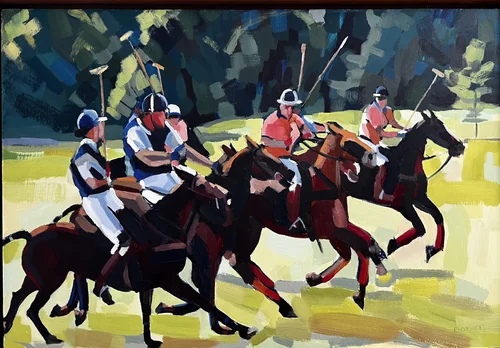 In 2008 I was watching the BBC News and they mentioned the first British Beach Polo Championships at Sandbanks in Poole, Dorset, was taking place in July. I contacted them and asked if I could get a press pass to take some pictures. I had a fantastic day taking several hundred pictures and did a few sketches, which turned into a series of five paintings and some oil sketches.