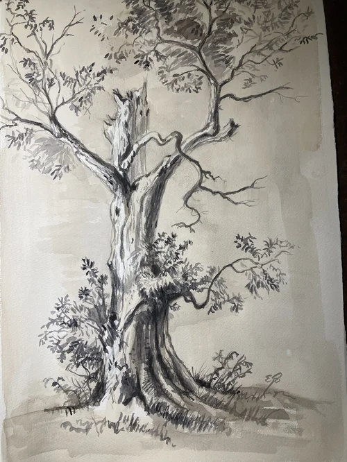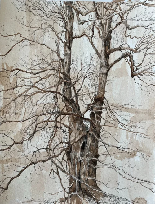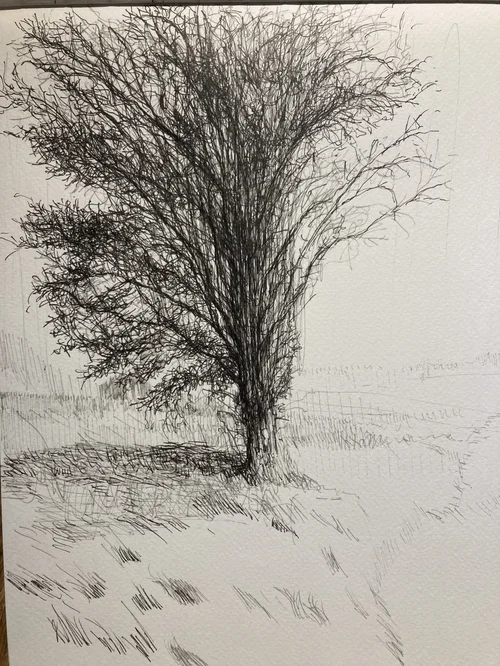 In this section I’ve included all the landscapes that don’t feature the folly! I took some very inspiring pictures and did some sketches down by the canal in Heyford. The gnarly willow trees are wonderful to draw and etch.