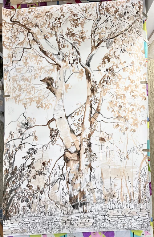 I was commissioned to do a portrait of Mabel by a friend whose mother was turning 80. She wanted her to be in a particular woodland during snowdrop season, and for her mother to be in the distance. I had to do a mock up of several photos to come up with a final composition. My friend’s mother absolutely adores the painting!